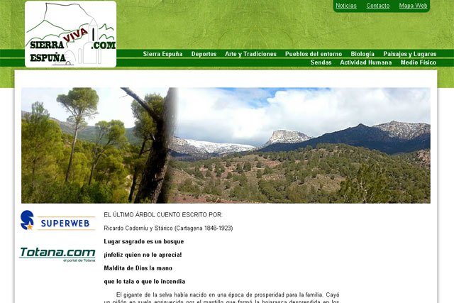 La página web Sierra Espuña Viva ha sido realizada con "Superweb": una herramienta desarrollada por Totana.com pensada para satisfacer las necesidades de sus clientes en Internet.