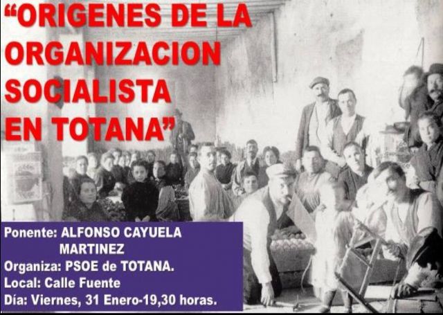 El Partido Socialista de Totana organiza una conferencia sobre "Los orígenes de la organización socialista en Totana"