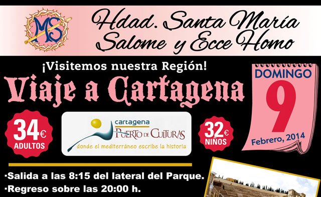 Por ello os animan a participar junto con la hermandad en este encantador viaje a Cartagena, donde nos sumergiremos en su historia a través de su Teatro y Museo Romano, ascensor panorámico, Museo Naval, Palacio Consistorial, Iglesia de Santa María de Gracia, paseo marítimo….