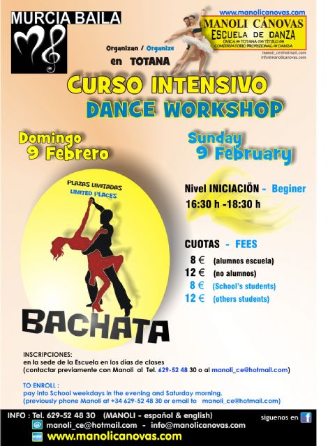 El curso se impartirá el próximo Domingo 9 de Febrero por la tarde en la Escuela de Danza Manoli Cánovas.