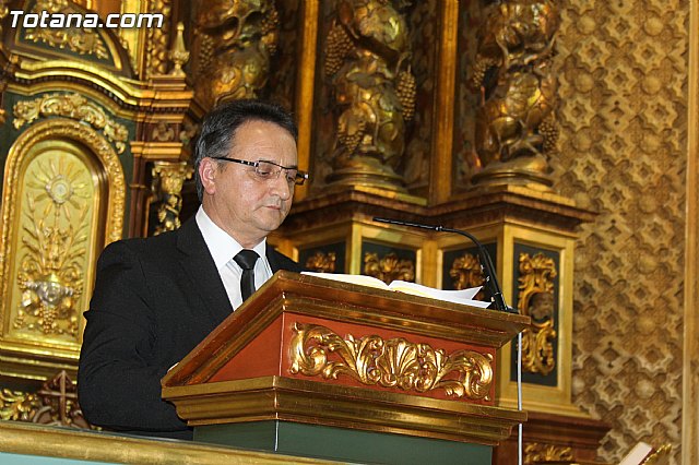 Don Antonio Martínez Belchí, Presidente electo del Ilustre Cabildo Superior de Procesiones de Totana desde noviembre de 2013, juró su cargo el pasado sábado, 1 de febrero de 2014 durante la misa de 19:00 horas en la Parroquia de Santiago el Mayor de Totana.
