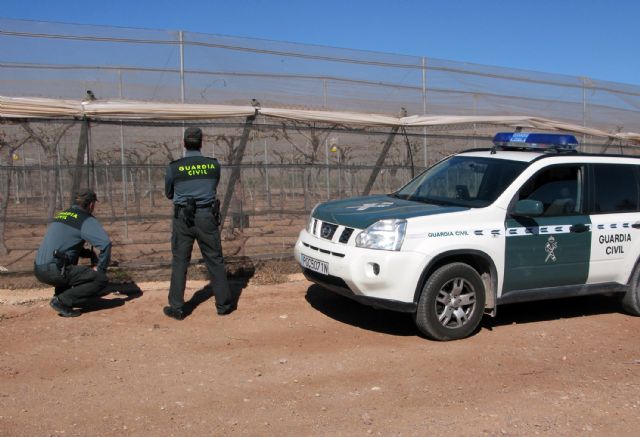 La Guardia Civil de la Región de Murcia, en el marco del 'Plan contra las sustracciones en explotaciones agrícolas y ganaderas', ha desarrollado la denominada operación 'RACIMO', que ha culminado con la detención de los cinco integrantes de un grupo delictivo dedicado a la sustracción de fruta en fincas del municipio de Totana.