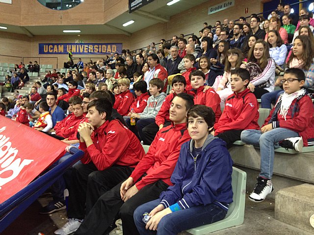 El Club Baloncesto Totana, en colaboración con el colegio Reina Sofía y la concejalía de deportes, viajó el pasado domingo 16 de febrero, al palacio de los deportes de Murcia, para animar al equipo de ACB UCAM Murcia que se enfrentaba a un potente Herbalife Gran Canaria. Los jugadores del Club pudieron disfrutar de un buen encuentro de baloncesto, y los más pequeños no dejaron de animar en ningún momento. Los murcianos no pudieron sumar una nueva victoria ya que perdieron por 71-78. A pesar de la derrota los jugadores estaban muy contentos, ya que muchos era la primera vez que asistían a un espectáculo de estas características.
