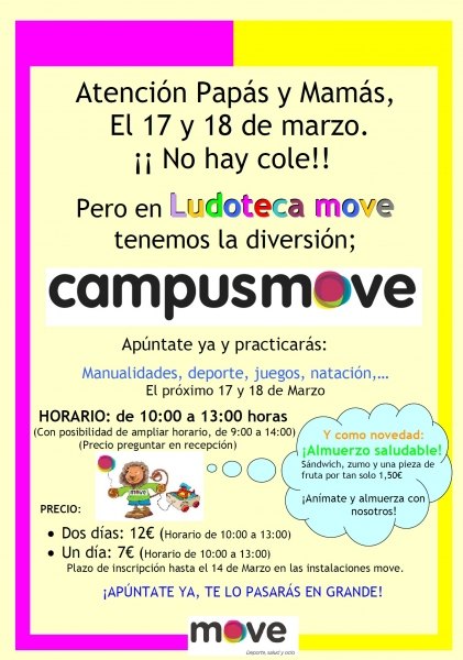 Atención Papás y Mamás, el 17 y 18 de marzo ¡No hay cole!, pero en Ludoteca move tenemos la diversión: CAMPUSMOVE