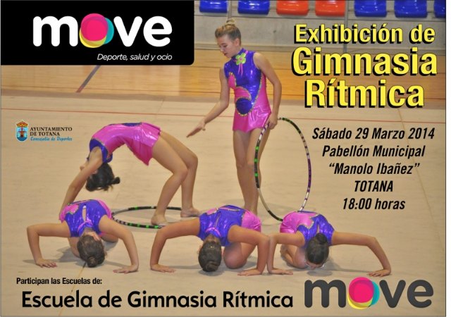El próximo sábado 29 de marzo las niñas de la escuela de gimnasia rítmica de move realizarán una exhibición de este espectacular deporte en el Pabellón Municipal "Manolo Ibañez" de Totana.
