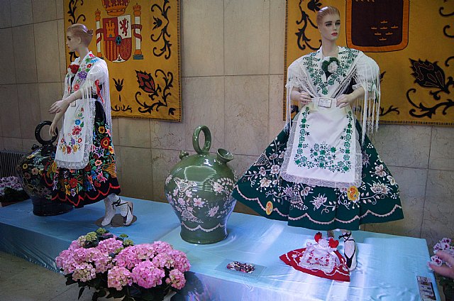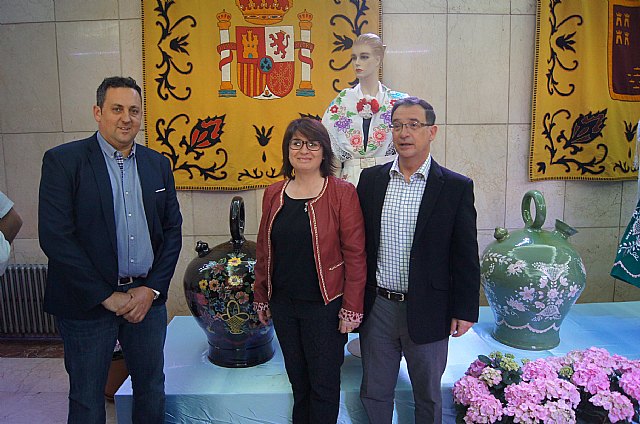 La empresa totanera “Alfar Tudela” expone desde el pasado viernes tinajas típicas de cerámica en la sede de la Delegación del Gobierno que están pintadas con los mismos colores y dibujos de los refajos de los trajes huertanos, y que permanecerá durante la Semana Santa y Fiestas de Primavera.