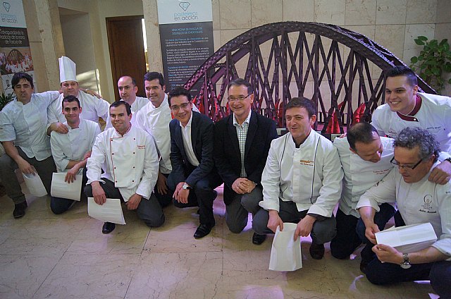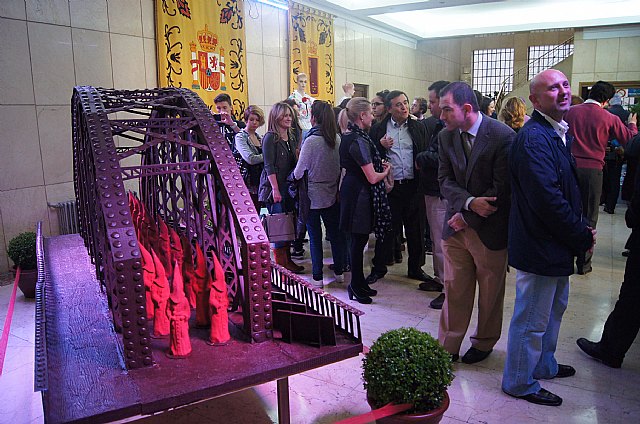 La muestra permanecerá durante el mes de abril y se celebra también junto a una reproducción de una mona de Pascua del “Puente de Hierro” elaborada con 350 kilogramos de chocolate por 16 pasteleros y chocolateros de Murcia y Alicante con el fin de promocionar este tradicional dulce.