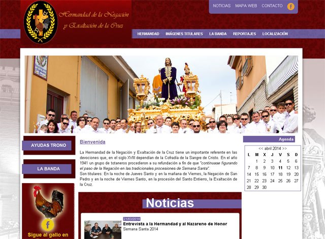 Superweb cuenta con una serie de plantillas para elaborar las páginas web, pero también está disponible el servicio adicional de diseño a medida. La Hermandad de la Negación y Exaltación de la Cruz ha contado con este servicio para elaborar una web con su identidad y una carga visual extra.