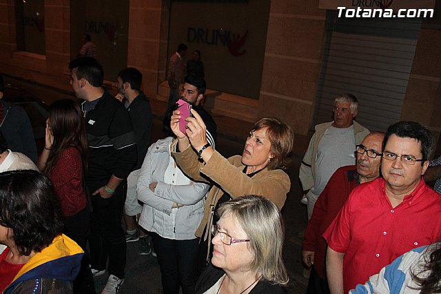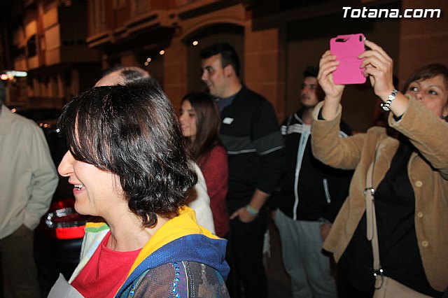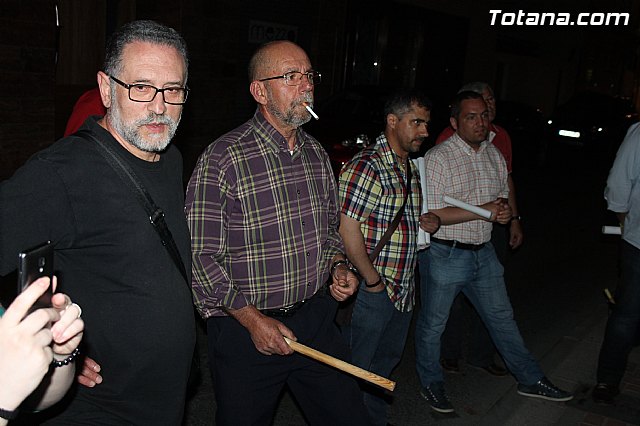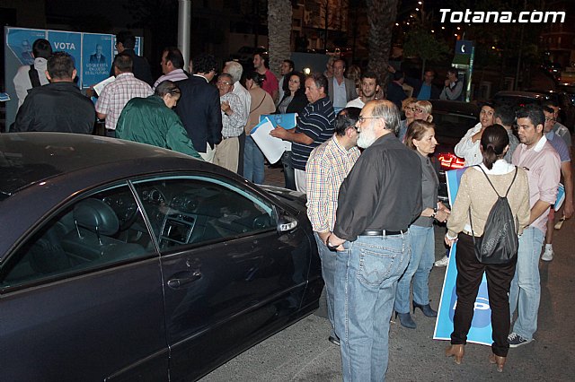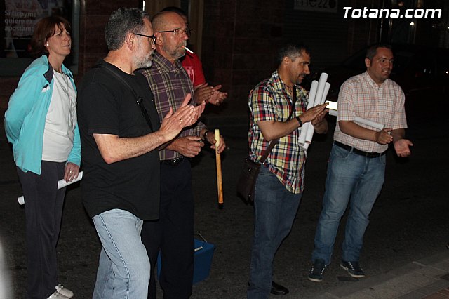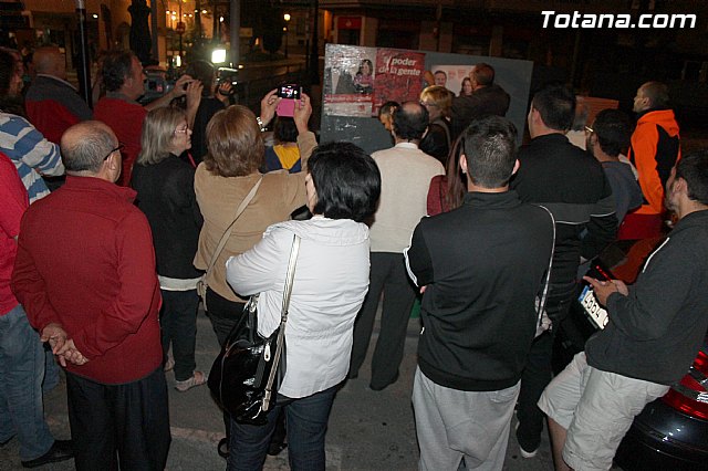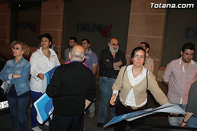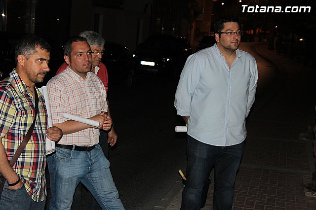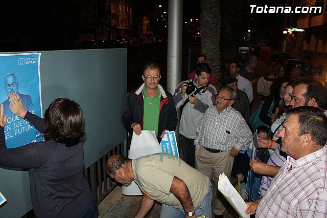 Representantes de los tres partidos políticos PP, PSOE e IU-Verdes con representación en el Ayuntamiento de Totana y que concurren a las elecciones europeas de próximo día 25 de mayo arrancaron en la pasada medianoche la campaña electoral con la tradicional pegada de carteles en la avenida Rambla de La Santa.