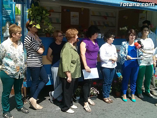 Las socias, acompañadas por la alcaldesa de Totana, Isabel María Sánchez, y los ediles de Sanidad, Eulalia Sandoval, y Cultura, Alfonso Cayuela, han dado lectura a dicho manifiesto conmemorativo y han puesto a la venta en el punto informativo productos artesanos que les permita autofinanciarse.