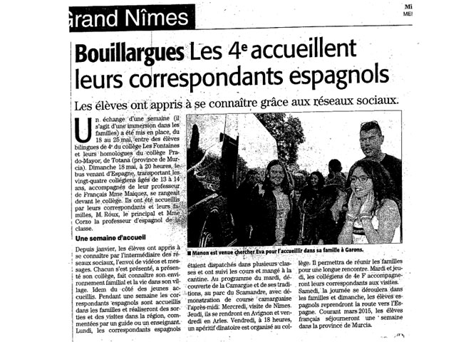 Un año más, el IES Prado Mayor viaja a Francia de intercambio con el collège “Les Fontaines” de Bouillargues a siete kilómetros de Nîmes. Una semana fantástica, del 18 al 25 de mayo, espera a estos jóvenes alumnos de 1º, 2º y 3º de la ESO. Arles, Nîmes, La Camargue, Avignon son las visitas preparadas con diversas actividades para disfrutar nuestro francés y convertirnos en pequeños turistas, algunas veces muy inquietos por las compras y los souvenirs. ¡Que no se nos olvide nadie!