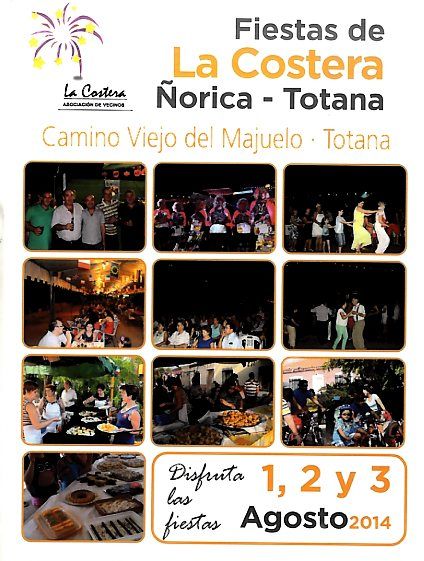 Las fiestas de la pedanía totanera de La Costera-Ñorica se celebran este fin de semana y arrancan el viernes 1 de agosto con la inauguración, lanzamiento del chupinazo, fuegos artificiales y apertura del chiringuito de la Hermandad de Beso de Judas. La velada continuará con la actuación de "Aires Latinos".