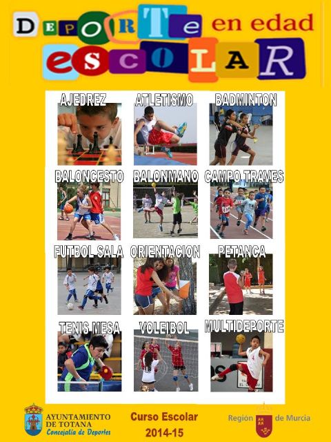 La Concejalía de Deportes pondrá en marcha durante el próximo mes de septiembre el Programa de Deporte Escolar correspondiente al curso escolar 2014/2015, en colaboración con los centros de enseñanza y clubes deportivos de Totana, y la Dirección General de la Actividad Física y el Deporte de la Región de Murcia.