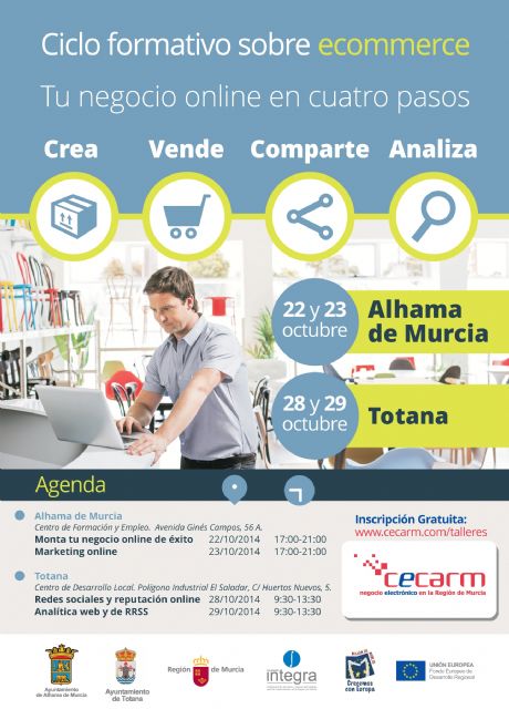 La Concejalía de Fomento del Empleo, junto con Cecarm Negocio Electrónico de la Región de Murcia, han organizado dos talleres gratuitos de Redes Sociales y de Reputación Online y Analítica Web RSS que se realizarán en el Centro de Desarrollo Local (Polígono Industrial).