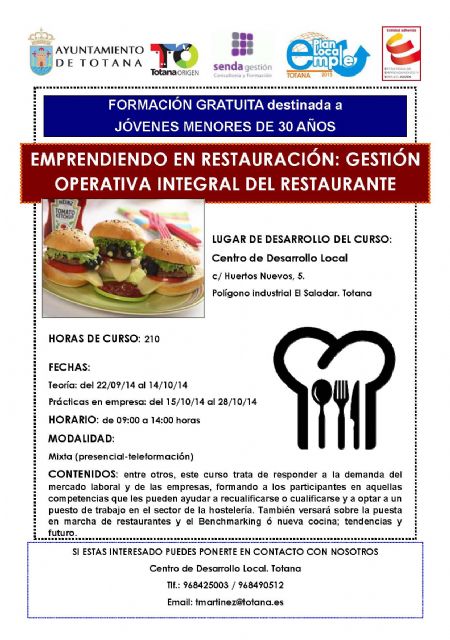 Aquellas personas interesadas pueden ponerse en contacto en el Centro de Desarrollo Local en el teléfono 968425003 o en el 968490512 o bien a través del correo electrónico tmartinez@totana.es