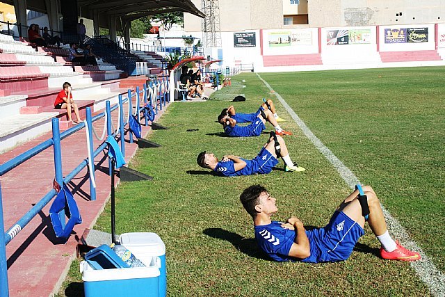 El Real Murcia CF SAD celebró hoy su primer entrenamiento de la semana en el estadio municipal “Juan Cayuela” de Totana, cedido por el Ayuntamiento para preparar su próximo partido de Liga correspondiente a la octava jornada del grupo I de Segunda B, que le enfrentará el próximo domingo a las 17:00 horas al Atlético Astorga.