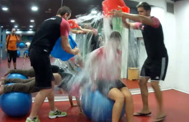 Miembros del centro deportivo participan en el Ice Bucket Challenge