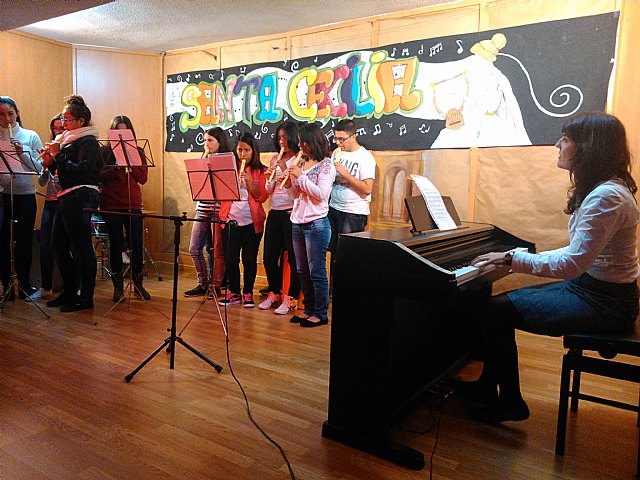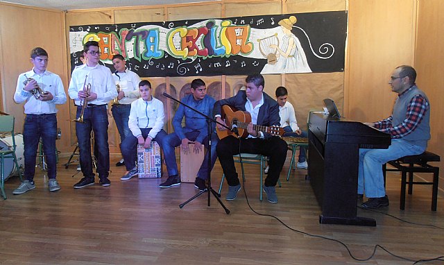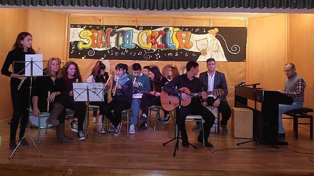 El pasado sábado 22 de noviembre, se celebró la festividad de Santa Cecilia, patrona de la Música. Por este motivo el Departamento de Música del IES “Prado Mayor” formado por los profesores José Luis Moreno Martínez y Ana Dougnac Pascual, organizó y coordinó durante toda la semana del 17 al 21 de noviembre una serie de actividades de carácter muy diverso y en las que cabe destacar la gran implicación de profesores y profesoras de otras especialidades. De esta forma, los alumnos/as pudieron disfrutar de actividades como; un taller de meditación musical coordinado por la profesora Francisca García del departamento de orientación, una serie de seis conferencias que, bajo el título “La universalidad de la Música” trataban de profundizar en la conexión existente entre la música y otras disciplinas, impartidas por los profesores Juan José López (dept. de Filosofía), Juan Luis Salas ( dept. de Matemáticas), María Sáez ( dept. de Lengua), Fuensanta Segura( dept de Biología),Gilberto Vásquez( dept. de Lengua) y Rosario Arcas ( dept. de Filosofía), cuyos alumnos de 1º de bachillerato hicieron una preciosa representación del mito griego de Orfeo y Eurídice. Alumnos y profesores tuvieron también la oportunidad de asistir a la maravillosa exposición “Bienvenidos a la ópera”, organizada por el profesor Gilberto Vásquez en la biblioteca del centro, en la que se hacía una incursión en el universo de la ópera, incluyendo la proyección de algunos de los más emocionantes fragmentos de este género.