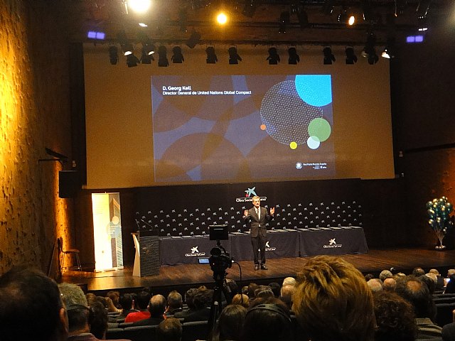 También intervino en el acto, el Director General de la oficina y la red mundial del Global Compact de la ONU en Nueva York, Georg Kell -que depende directamente del Secretario General de la ONU- que animó a los representantes de los varios cientos de empresas y entidades asistentes al acto, a seguir profundizando en el desarrollo y la aplicación de los diez principios del Global Compact en el ámbito de la actividad empresarial y de otras entidades y ONG’S, ya que, según manifestó: “nos encontramos en un punto de inflexión en que las empresas han de comprender que el desarrollo sostenible de la sociedad es imprescindible para su propio éxito a largo plazo y que el modo de alcanzar ese objetivo es la colaboración público-privada basada en valores éticos, sociales y medioambientales” .