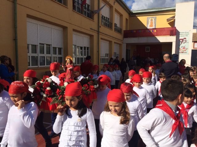 Autoridades municipales acompañaron a las comunidades educativas de los colegios “Reina Sofía” y “Santa Eulalia” de Totana en sus respectivas romerías de Santa Eulalia por las calles para acercar a los alumnos del centro de enseñanza a las tradiciones y costumbres de Totana, como viene siendo tradicional en ambos centros de enseñanza.