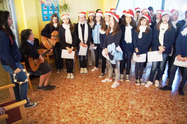 En el acto, alumnos del Colegio "La Milagrosa" de Totana han interpretado a los usuarios del centro tradicionales villancicos y han disfrutado del belén viviente que han preparado para la ocasión usuarios del centro.