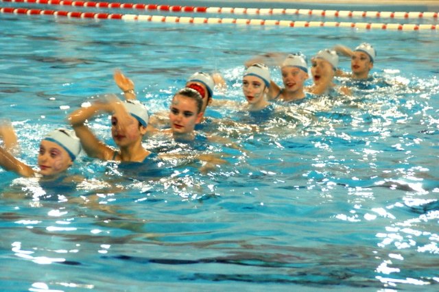Las chicas de Natación Sincronizada de Move dirigidas por su entrenadora Sofía Costa pudieron mostrar sus progresos en este difícil deporte al numeroso público asistente.