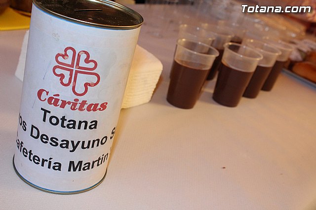 El pasado domingo 4 de enero de 2015, tuvo lugar II DESAYUNO SOLIDARIO A BENEFICIO DE CÁRITAS. La asociación pública de fieles Cortejo de Nuestra Señora de la Misericordia quiere dar las gracias a todas las personas que colaboraron aportando juguetes, comida y donativos, a las empresas que colaboraron aportando los productos para realizar el desayuno de forma totalmente gratuita, a las cuadrillas de Pascua la banda del Mazapán y los Charrasqueados, que amenizaron con su música el acto, a los medios de comunicación por su colaboración en la divulgación de este tipo de eventos y al gerente de la cafetería Martín por aportar su trabajo e instalaciones.