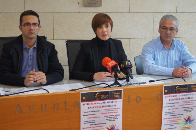 La concejal de Atención Social, Josefa María Sánchez Méndez, y el presidente de "D´Genes", Juan Carrión, acompañados por un directivo de esta asociación, Juan Crespo, han dado a conocer los diferentes actos programados para dar visibilidad a la realidad de las enfermedades poco frecuentes.