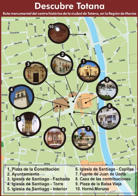 La audioguía, disponible en “Google Play”, se puede descargar de forma gratuita para dispositivos móviles “Android” y propone una ruta monumental por los principales lugares de interés turísticos del centro histórico de Totana, como el Ayuntamiento, la Torre de la Iglesia Santiago, la Fuente Juan de Uzeta, la Casa de las Contribuciones, Plaza Constitución, el Horno Moruno, Plaza Balsa Vieja, la Iglesia de Santiago y Capillas.