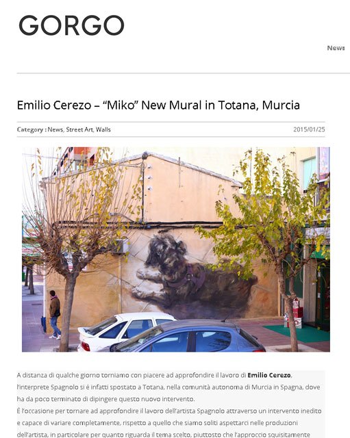 La obra mural “Miko” de Clínica Veterinaria Dogo, realizada por el joven artista totanero Emilio Cerezo, y que fue inaugurada recientemente junto a la clínica en la Avda. General Aznar de Totana, ha sido protagonista en la publicación italiana GORGO a través de un artículo titulado Emilio Cerezo – “Miko” New Mural in Totana, Murcia