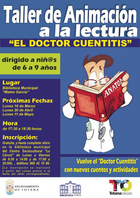La Concejalía de Cultura informa de que el próximo lunes 16 de Marzo, a partir de las 17:30 horas se retoma el taller de animación a la lectura "Doctor Cuentitis", ofertado desde la Biblioteca Municipal "Mateo García", con el cuento "La Flor de Lilolá".