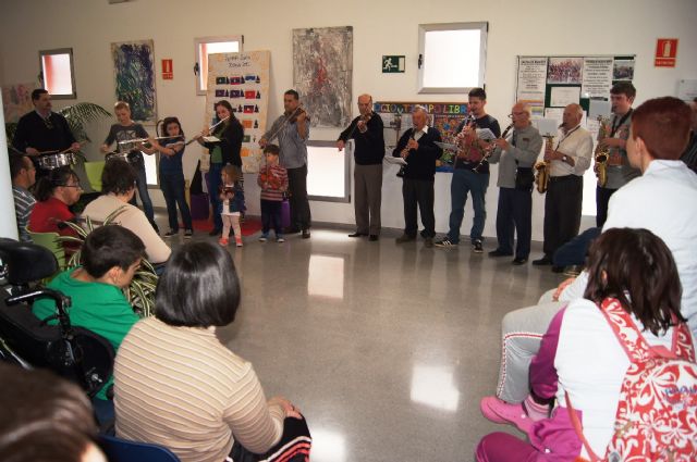 Músicos de la Orquesta de La Dolorosa ofrecieron hoy un mini-concierto a los usuarios del Centro de Día de Personas con Enfermedad Mental del Ayuntamiento de Totana y Centro Ocupacional "José Moyá Trilla", una actividad organizada con motivo de las fiestas de la Semana Santa.