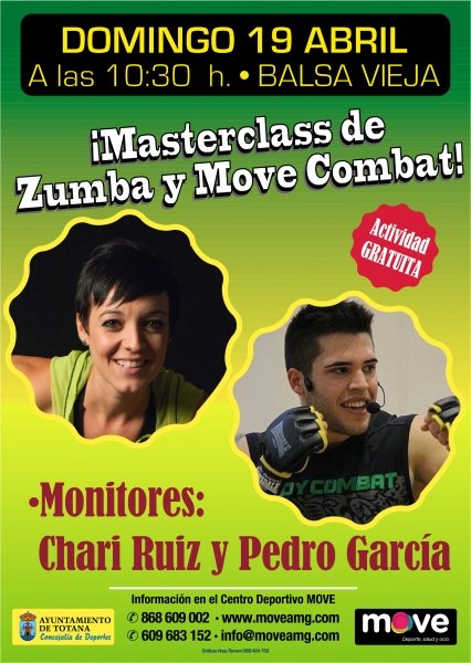 El próximo domingo 19 de Abril a las 10:30 h move celebra una master class de Zumba y de Move Combat en la plaza de la Balsa Vieja de Totana.