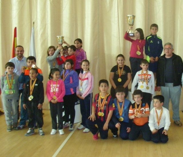 El pasado viernes 10 de abril tuvo lugar en el Pabellón Municipal de Deportes "Manolo Ibáñez", la entrega de trofeos de la Fase Local de Deportes de Equipo Benjamín y Alevín de Deporte Escolar, que se ha estado llevando a cabo semanalmente desde el mes de octubre. En este acto, estuvo presente el Concejal de Deportes del Ayuntamiento de Totana, Bartolomé Pallarés Pérez, y los maestros de Educación Física de los centros de enseñanza participantes. En cuanto a los resultados, hay que destacar al Colegio Santa Eulalia, que ha conseguido el primer puesto en cuatro modalidades deportivas, como son Multideporte Benjamín, Baloncesto Benjamín, Voleibol Alevín y Balonmano Alevín Femenino; y al Colegio Reina Sofía, que ha conseguido ser campeón en tres disciplinas, que son Futbol Sala Alevín, Baloncesto Alevín y Baloncesto Alevín Femenino. Por ultimo, el Colegio La Milagrosa ha logrado el primer puesto en la modalidad de Balonmano Alevín.