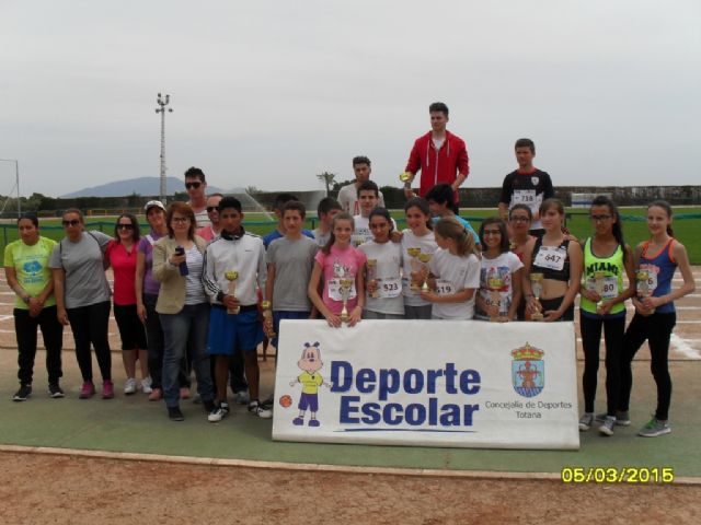 La actividad concluyó con la entrega de trofeos a los tres primeros clasificados de cada categoría, por parte de la Alcaldesa del Ayuntamiento de Totana, Isabel María Sánchez Ruíz, y el Concejal de Deportes, Bartolomé Pallarés Pérez. Los ganadores finales en las diferentes categorías fueron: Pedro José López López (Tierno Galván), en alevín masculino; Paula García Martínez (Reina Sofía), en alevín femenino; Sergio Carrasco Muñoz (Reina Sofía), en infantil masculino; Cindy Ceron Amaguaya (Juan de la Cierva), en infantil femenino; José Luis Mainato Alulema (Reina Sofía), en cadete masculino; Silvia Aledo Martínez (La Milagrosa), en cadete femenino; y Antonio Sánchez Martínez (Reina Sofía), en juvenil masculino.