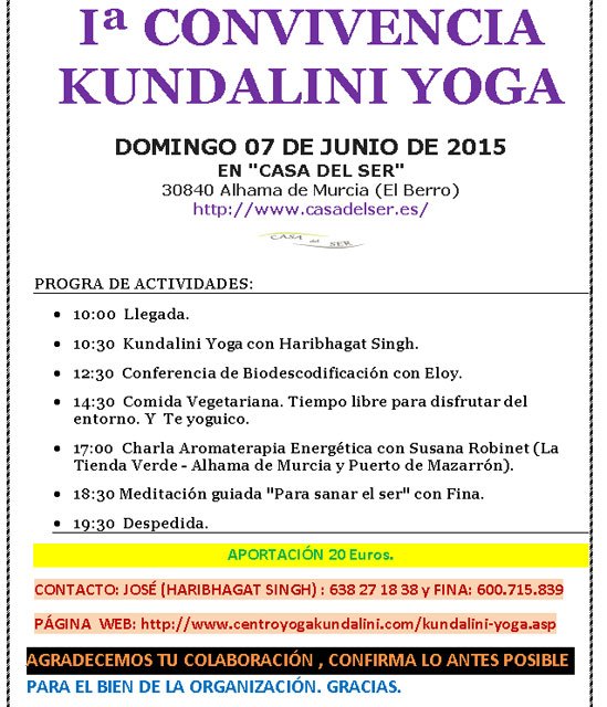 La 1ª Convivencia Kundalini Yoga tendrá lugar el domingo 7 de junio en El Berro (Alhama)