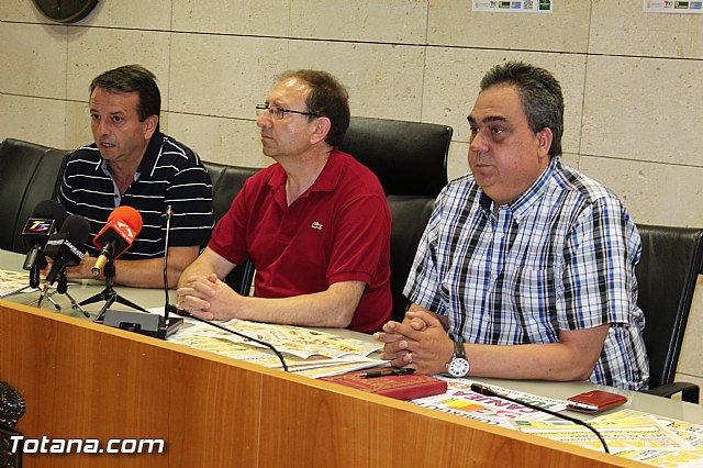 El concejal de Turismo, Agustín G. Martínez, acompañado de los presidentes de la Asociación de Empresarios de la Hostelería (ASEMHOS), Agustín Escarabajal, y de la Asociación de Comerciantes de Totana, Francisco Andreo, presentaron esta iniciativa consolidada ya en estas fechas del verano.
