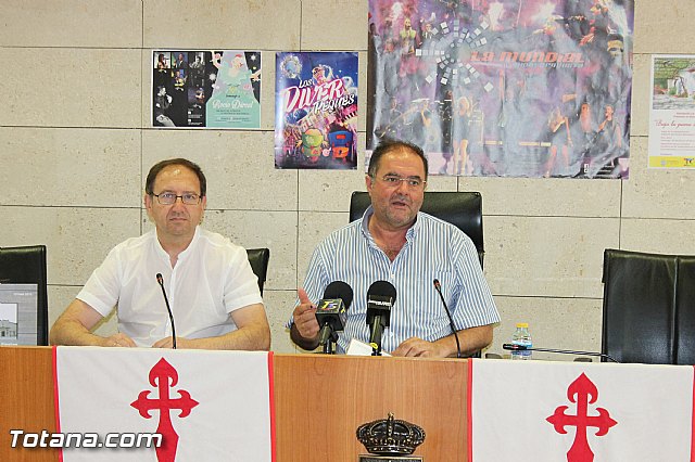 Un amplio y variado número de actividades conforman el programa de las fiestas patronales en honor a Santiago Apóstol en Totana, que han presentado el alcalde, Juan José Cánovas, y el concejal de Festejos, Agustín Gonzalo Martínez.