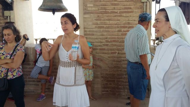 Los participantes subieron hasta lo más alto de la torre de la iglesia parroquial de Santiago y contemplaron la panorámica de Totana a vista de pájaro.