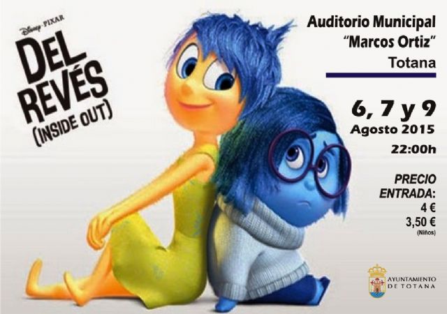 La Concejalía de Cultura informa de que esta semana se retoma la programación del Cine de Verano, en el auditorio del parque municipal "Marcos Ortiz", con la proyección de la película de animación "Del revés", los días 6, 7 y 9 de agosto, a partir de las 22:00 horas.
