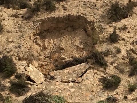 El peligro lo produce un amplio corrimiento de tierras que cada día es mayor en el canal que ha producido una abertura importante en el terreno, ayudado también por los nidos de conejos que proliferan en la zona.