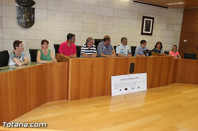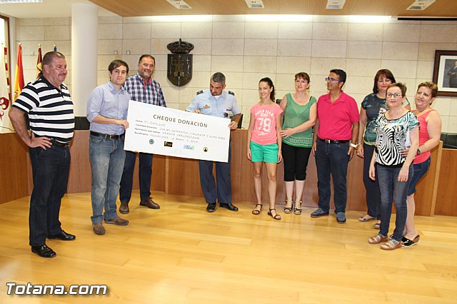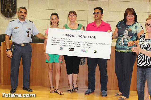 El comandante del Escuadrón de Vigilancia Aérea nº13 ha hecho entrega a miembros de ambas asociaciones de 2.558 euros correspondientes al dinero recaudado en dicha prueba deportiva, celebrada el pasado 14 de junio en sendas forestales del parque regional de la Sierra de Espuña.