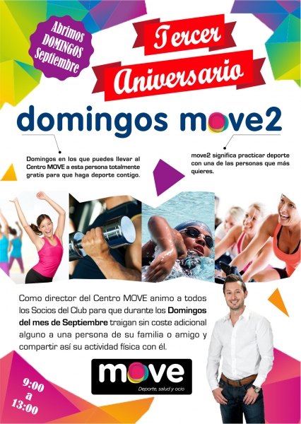 En Move celebramos nuestro tercer año de vida y para ello nuestro Centro Deportivo abre todos los domingos de Septiembre de 09:00 a 13:00 h.