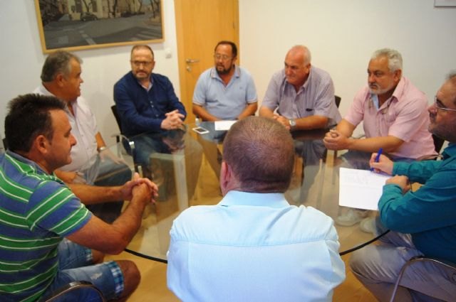 El alcalde de Totana, Juan José Cánovas, y el primer teniente de alcalde y concejal de Agricultura, Andrés García, se han reunido recientemente con la Comunidad de Regantes en esta localidad para establecer estrategias y líneas conjuntas de trabajo dirigidas a posibilitar la ejecución de aquellas infraestructuras que contribuyan al aprovechamiento de las aguas pluviales para su posterior reutilización en el campo totanero por parte de los comuneros.