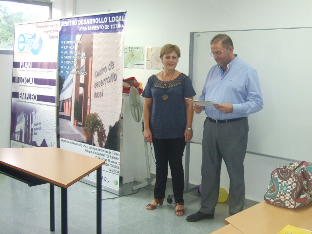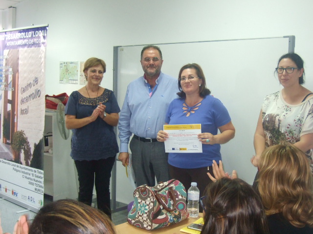 El alcalde, Juan José Cánovas, y la concejal de Desarrollo Económico, Fomento y Empleo, Antonia Camacho, han entregado recientemente los diplomas correspondientes al curso de "Técnico en animación de personas mayores y discapacitados" que se ha impartido en el Centro de Desarrollo Local de Totana.