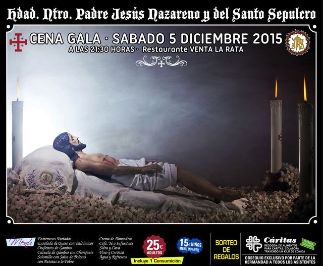 La Hermandad de Nuestro Padre Jesús Nazareno y Santo Sepulcro de Totana celebrará el sábado , día 5 de diciembre, a partir de las 21:30, su cena anual de Hermandad, en el restaurante Venta la Rata.