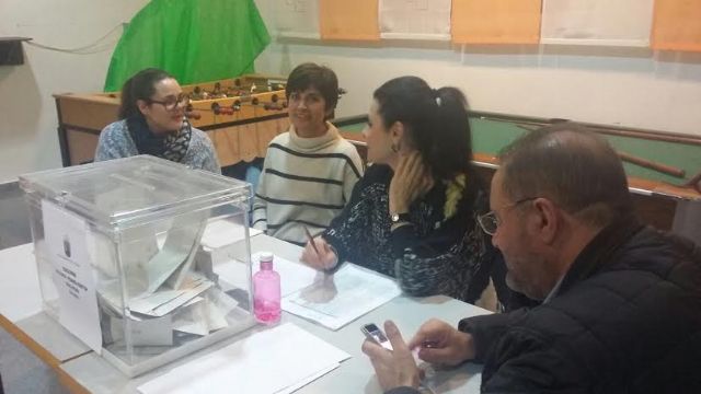 Durante la jornada electoral se dieron cita el alcalde, Juan José Cánovas, y los concejales Antonia Camacho, Inmaculada Blázquez, Agustín Gonzalo Martínez, Víctor Balsas y Gertrudis María Ruiz, entre otras personas.