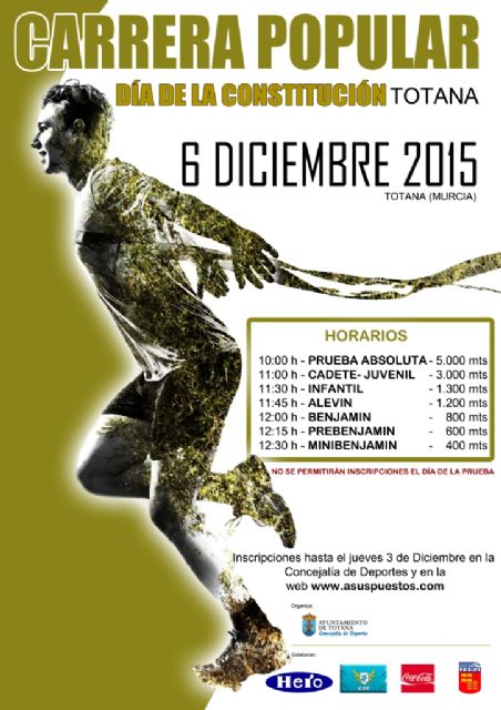 La Concejalía de Deportes organiza el próximo domingo 6 de diciembre la Carrera Popular del "Día de la constitución"