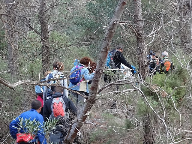 Unos treinta senderistas han completado la ruta del Domingo, Salimos desde Mortí por la rambla de la Santa siguiendo el cuace, hasta llegar a la Cueva.