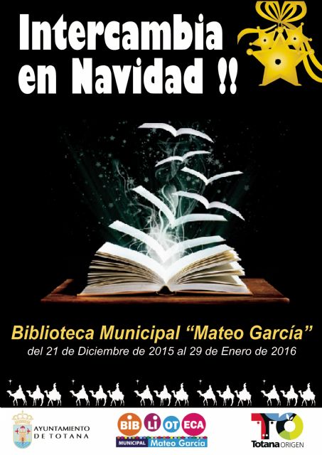 La Concejalía de Cultura a través de la Biblioteca Municipal "Mateo García", ha organizado para estas navidades una nueva edición de intercambio de libros a través de la campaña "Intercambia en Navidad", actividad que se desarrollará hasta el 29 de enero de 2016.